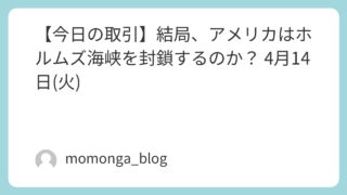 今日の日経 【今日の取引】結局、アメリカはホルムズ海峡を封鎖するのか? 4月14日(火)
