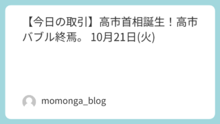 今日の日経 【今日の取引】高市首相誕生!高市バブル終焉。 10月21日(火) あんだけアメリカが上昇しているのに、130円高って実質暴落だよね?高市バブルが弾けたよ。昨日、利確して逃げた人が大正解! 2025.10.21 今日の日経