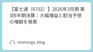 日記 【富士通(6702)】2026年3月期 第3四半期決算:大幅増益と配当予想の増額を発表