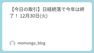 今日の日経 【今日の取引】日経続落で今年は終了! 12月30日(火)