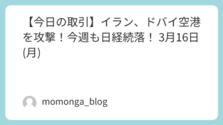 今日の日経 【今日の取引】イラン、ドバイ空港を攻撃!今週も日経続落! 3月16日(月)