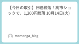 ともあれ、10月1日に20万近く負けた借金を返済することができました~。最後の取引で後味が悪い感じになりましたが、1日での取引ではプラスになったし、10月トータルの取引でもプラスになったということで、良い日だったと思いながら終わります。