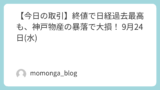 みずほは、取引直後から下降して戻りが弱いので下降トレンドだと思い、空売りを始める。しかし、10時前から上昇トレンドになってしまったので損切をする。爆上がりしたので損切していて良かった~と思っていたら、すぐに暴落して、そのまま保有していたらと考えると・・・。午後も基本的に下降トレンドだったのですが、最後の最後で爆上げして、10円以上戻し、前日終値よりマイナス12円ほどで取引終了です。みずほは地合いが荒く一気にトレンドが変わるので難しい。