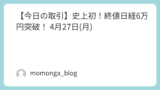 午前中の好調ぷりが嘘のような下落で、上昇と悪くない一日なのに微妙な感じで終わってしまう。TOPIXの上昇も保有している資産はあまり増えず。