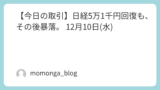 本日の取引は、NF日経レバを細かくデイトレしつつ、昨日仕込んだ、トヨタ自動車と三菱UFJフィナンシャルGが上昇してくれたので利確を行う。ただ、トヨタが午後にこんなに上昇すると思っていなかったので、午前中で利確したことを後悔する。ただ、三菱は午後に下落しているので、その時の判断は合っている。難しい。