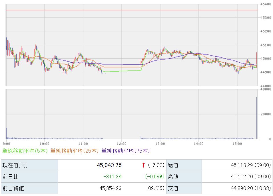 日経で約0.7%下落、TOPIXで約1.7%下落、