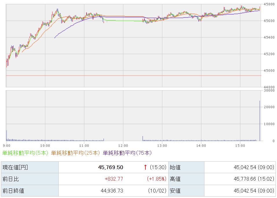 日経で約1.9%上昇、TOPIXで約1.4%上昇、