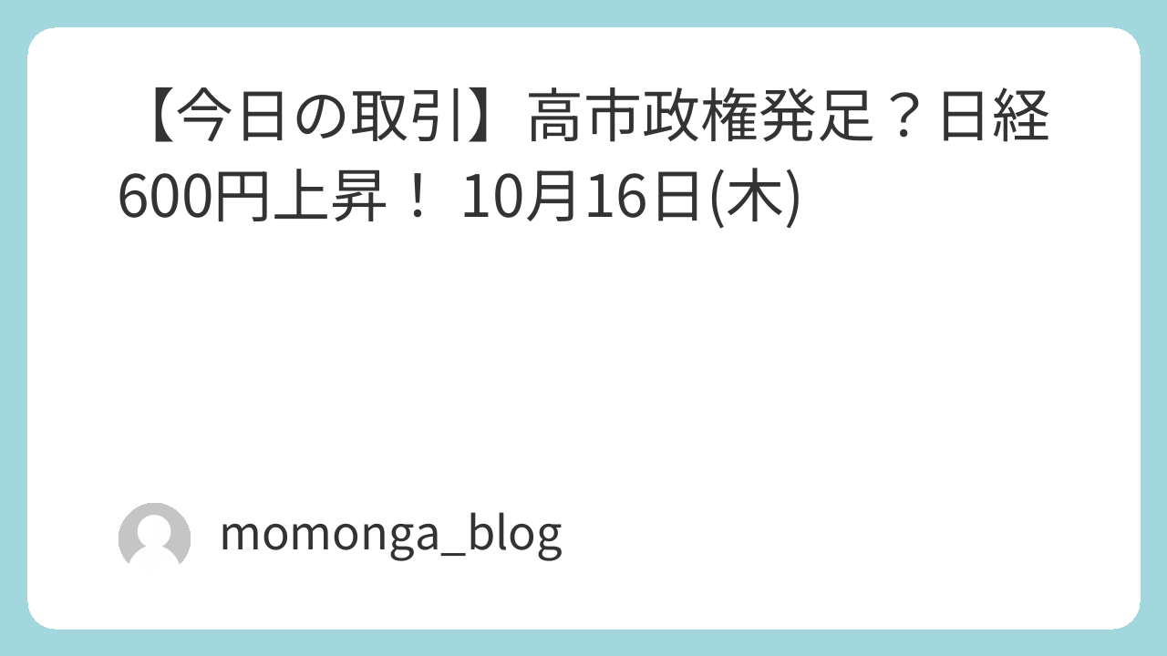 【今日の取引】高市政権発足?日経600円上昇! 10月16日(木)