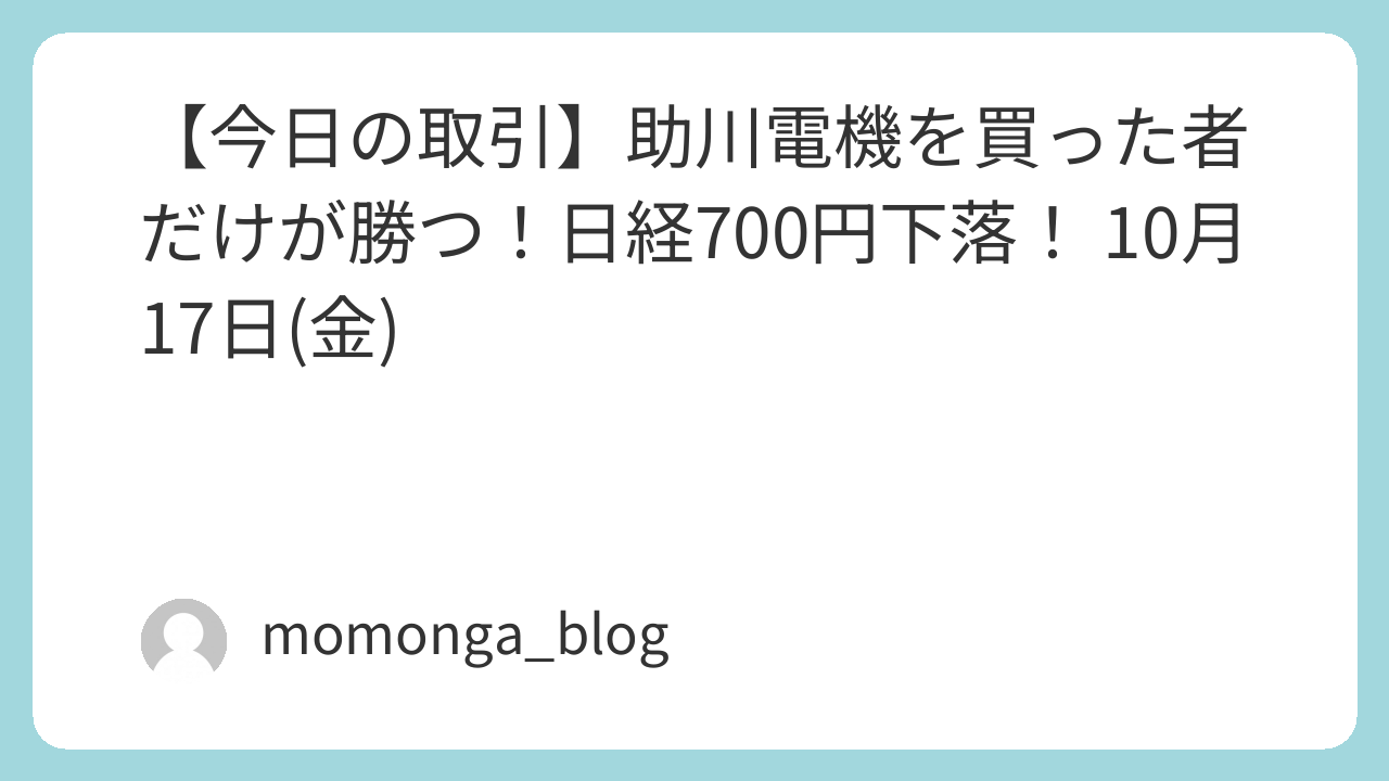 【今日の取引】助川電機を買った者だけが勝つ!日経700円下落! 10月17日(金)