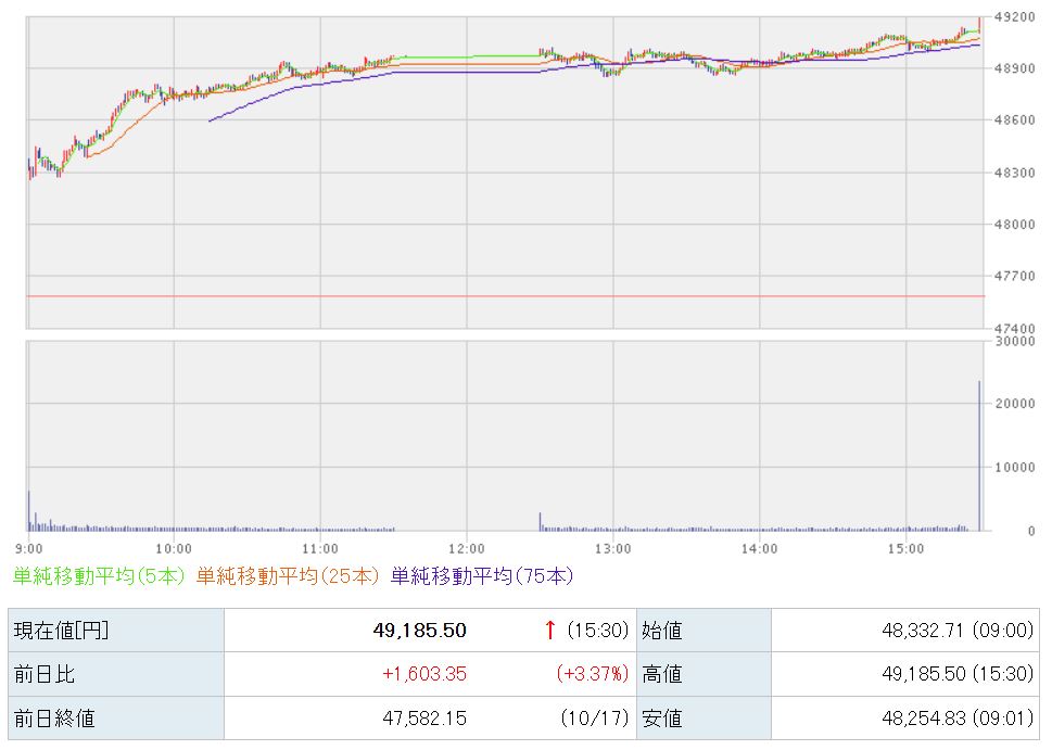日経で約3.4%上昇、TOPIXで約2.5%上昇、