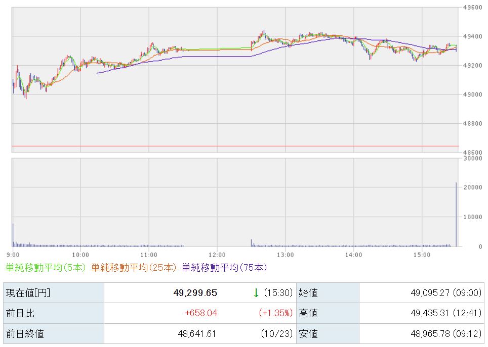 日経で約1.4%上昇、TOPIXで約0.5%上昇、