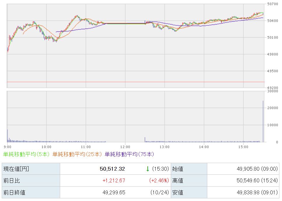 日経で約2.5%上昇、TOPIXで約1.7%上昇、