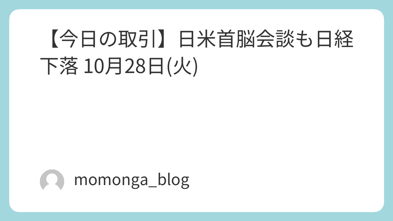 【今日の取引】日米首脳会談も日経下落 10月28日(火)