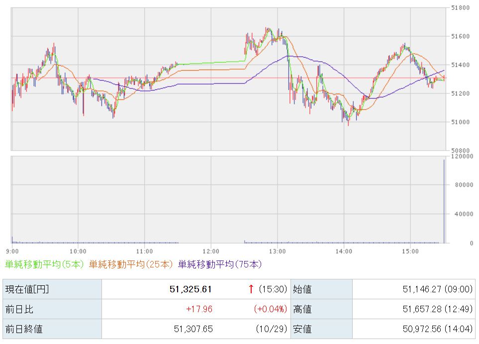 51,325円で本日の取引が終了しました。