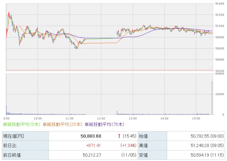 日経で約1.3%上昇、TOPIXで約1.4%上昇、