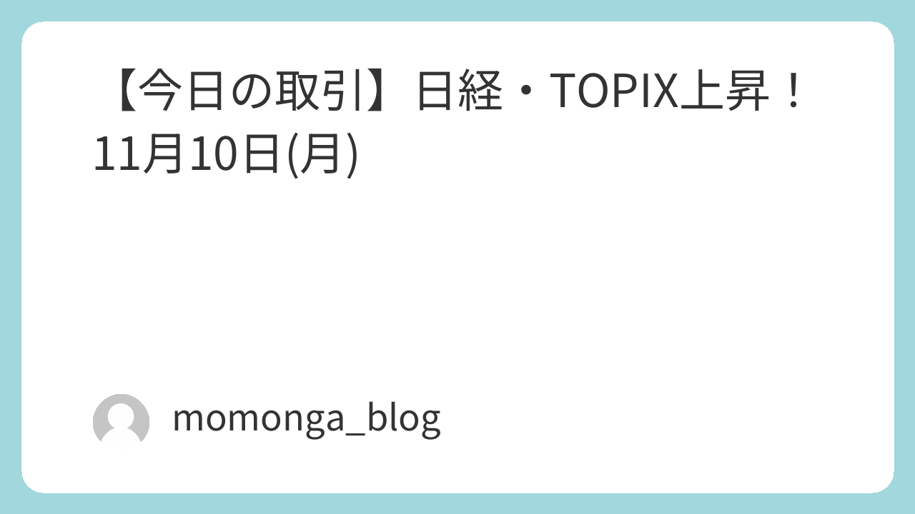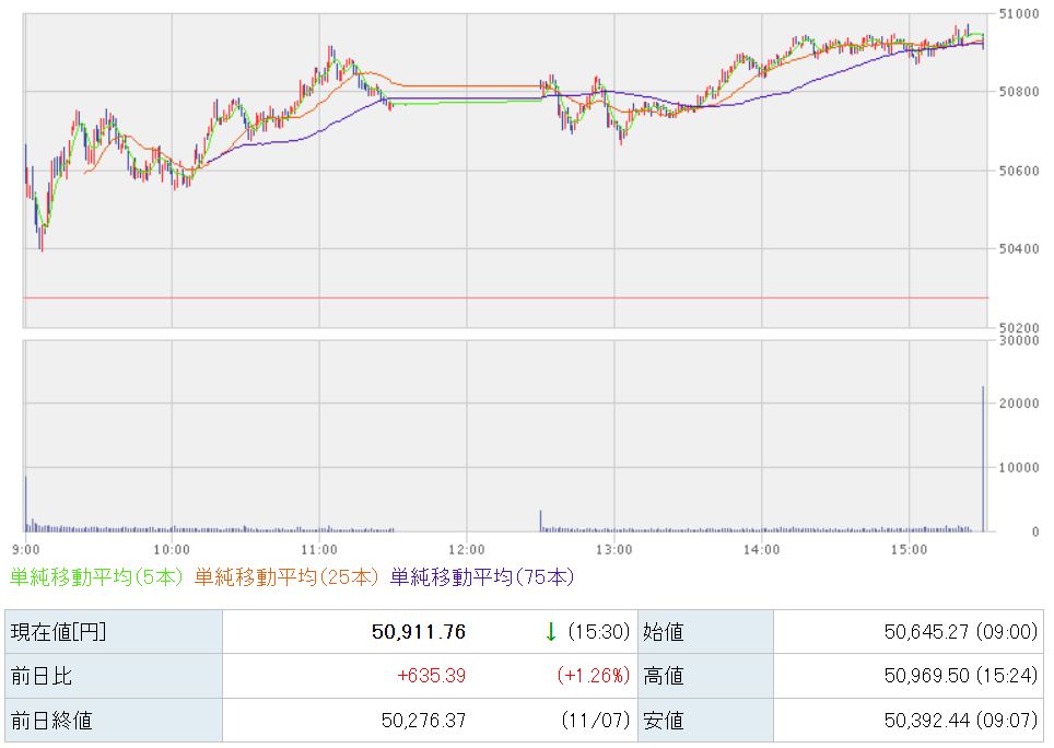 日経で約1.3%上昇、TOPIXで約0.6%上昇、