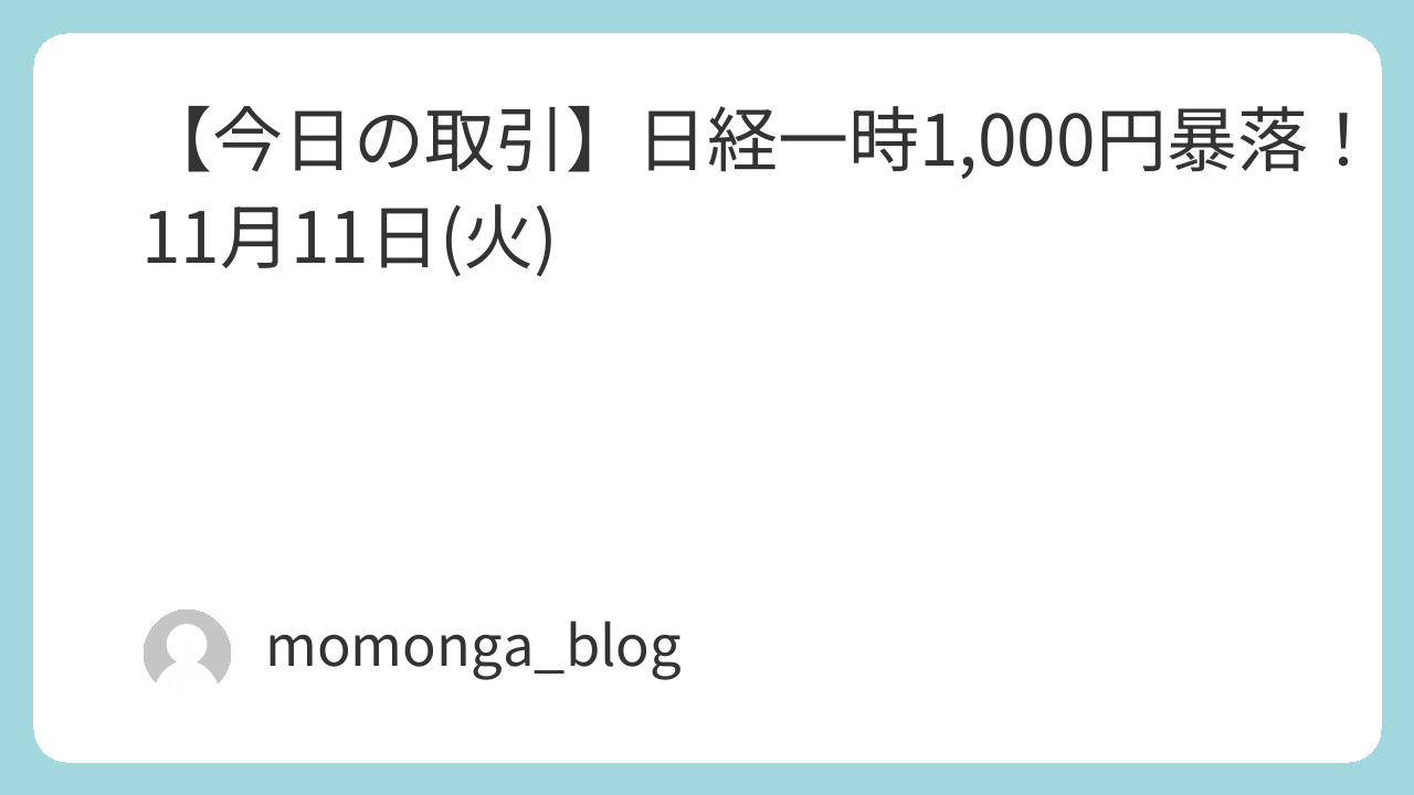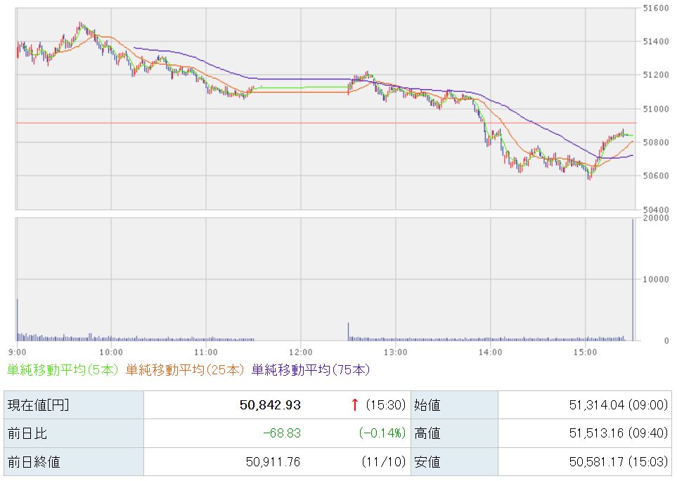 【今日の取引】日経一時1,000円暴落! 11月11日(火)