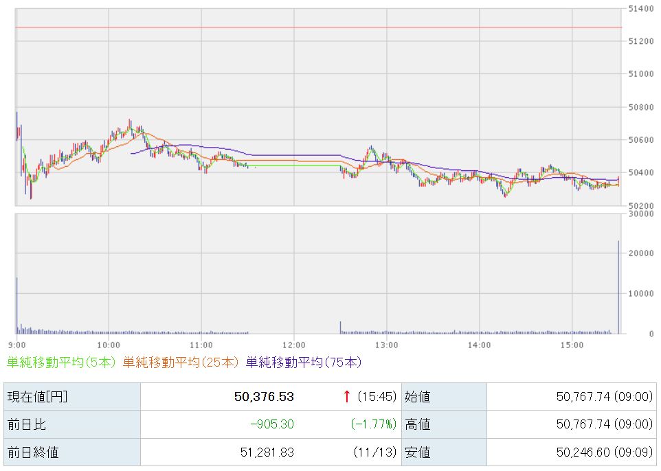 日経で約1.8%下落、TOPIXで約0.7%下落、