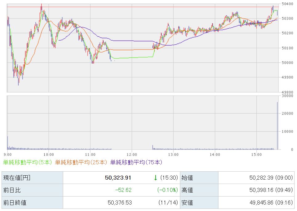50,323円で本日の取引が終了しました。