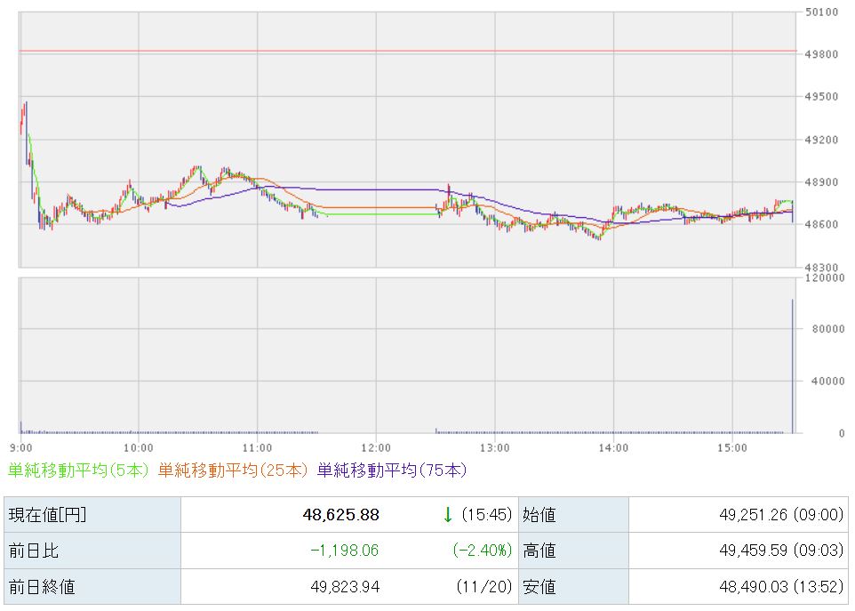 48,625円で本日の取引が終了しました。