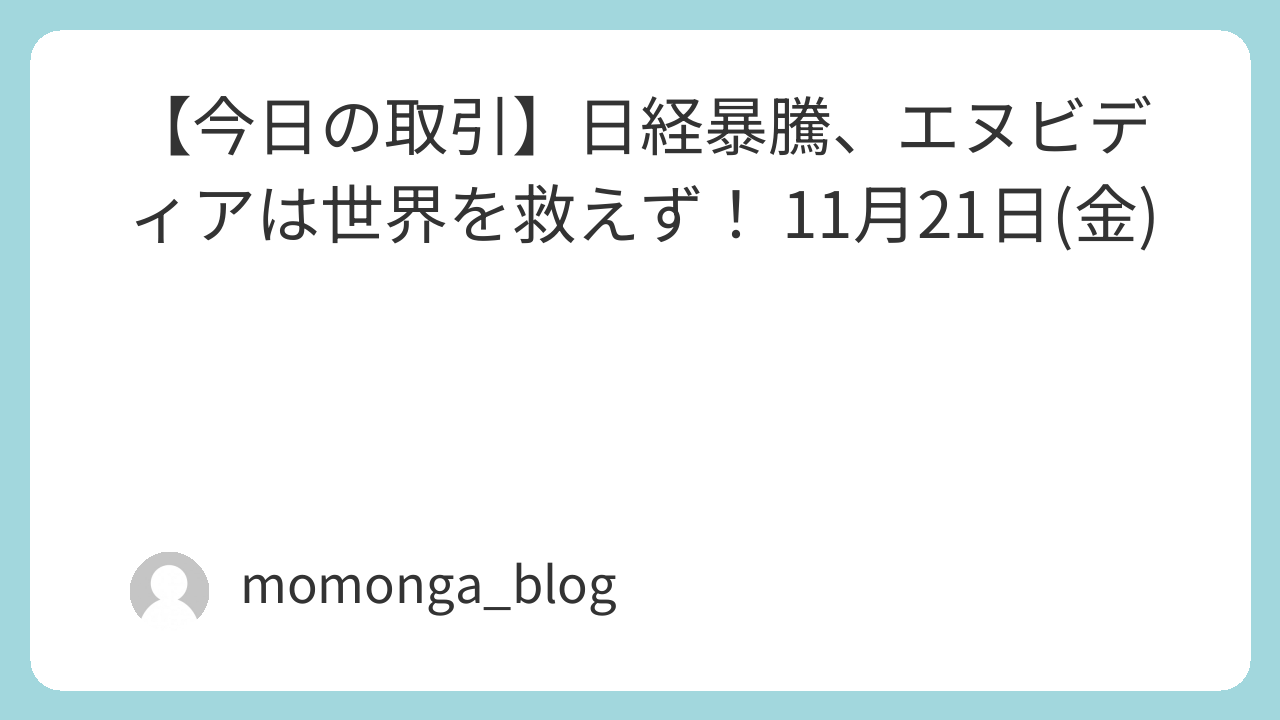 日経先物が暴落。前日のエヌビディアで