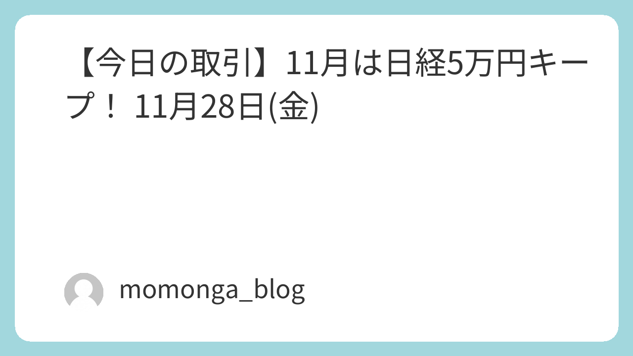 【今日の取引】11月は日経5万円キープ! 11月28日(金)