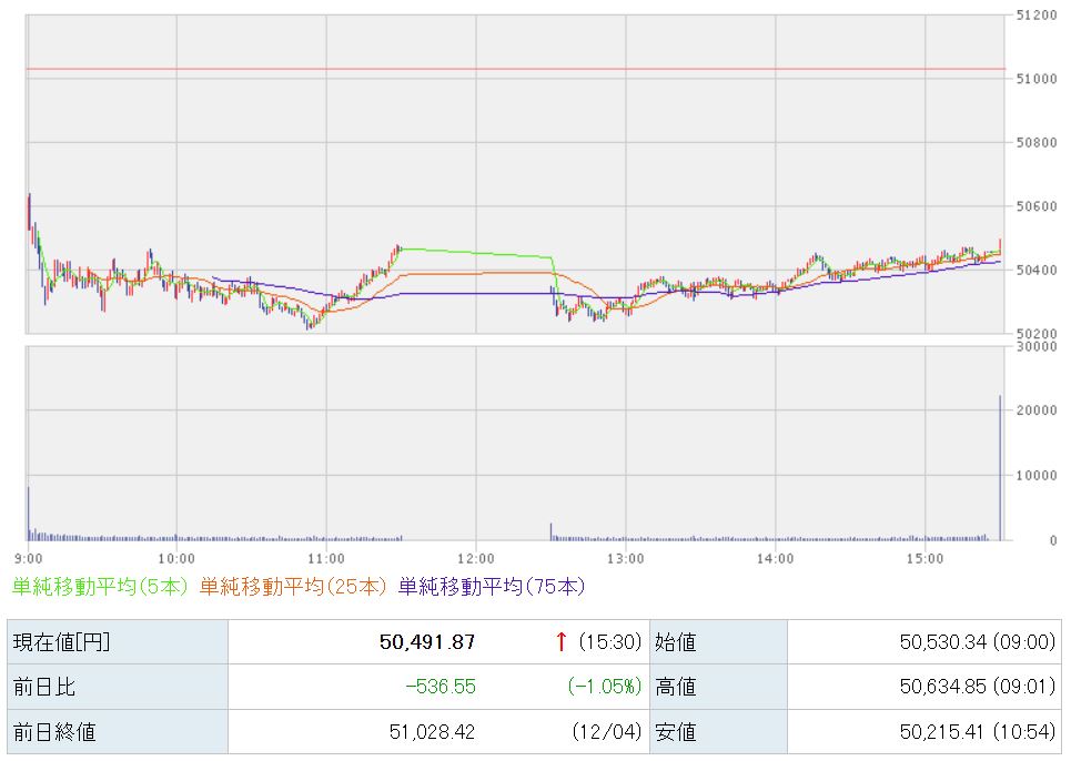 日経で約1.1%下落、TOPIXで約1.1%下落、