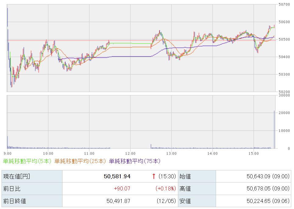 50,581円で本日の取引が終了しました。