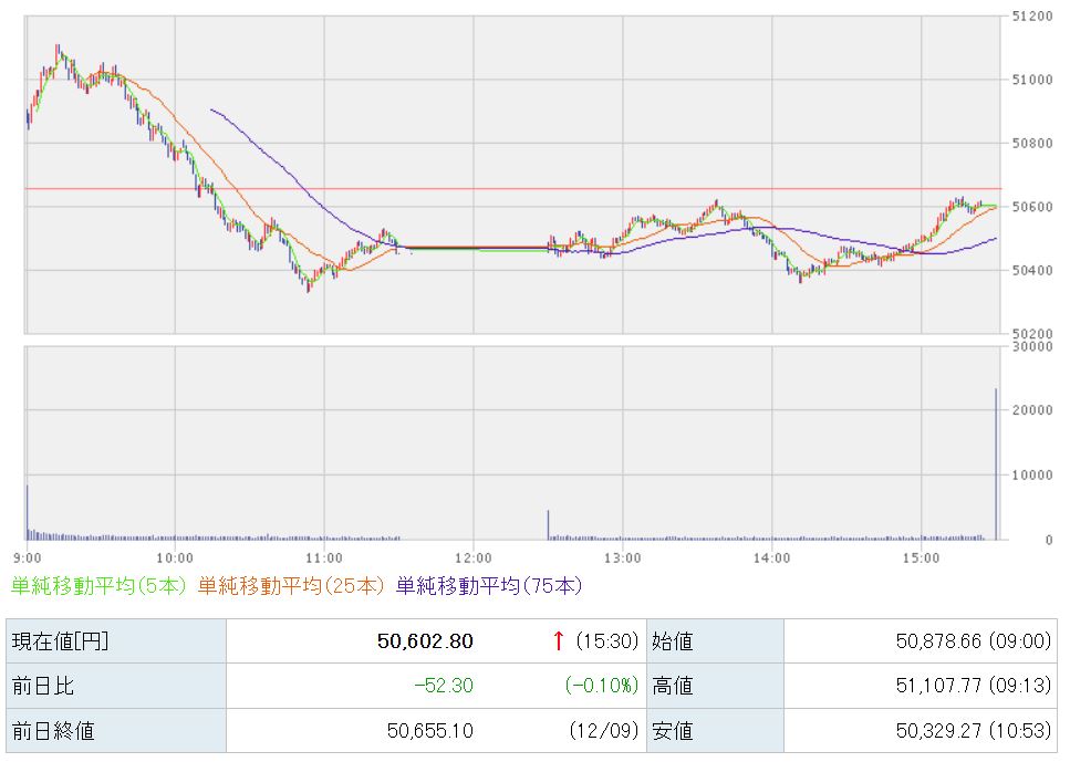 日経で約0.1%下落、TOPIXで約0.1%上昇、