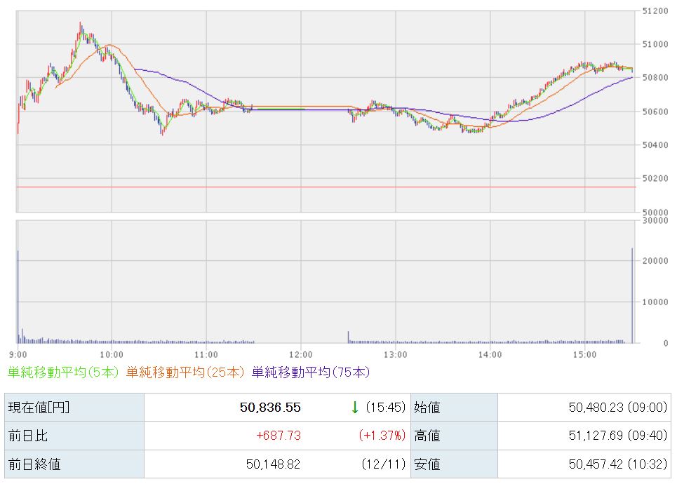 50,836円で本日の取引が終了しました。