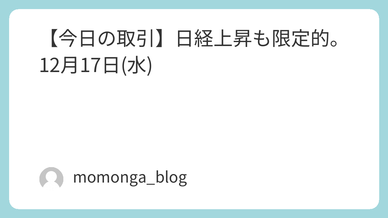 【今日の取引】日経上昇も、損切30万円越え! 12月17日(水)