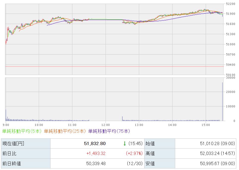 51832円で本日の取引が終了しました。