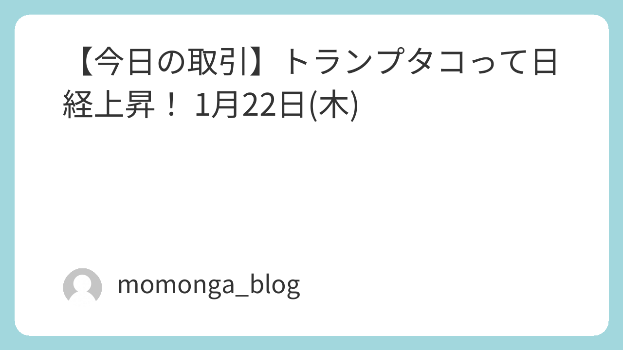 【今日の取引】トランプタコって日経上昇! 1月22日(木)