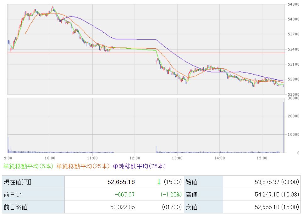 日経で約1.3%下落、TOPIXで約0.9%下落、