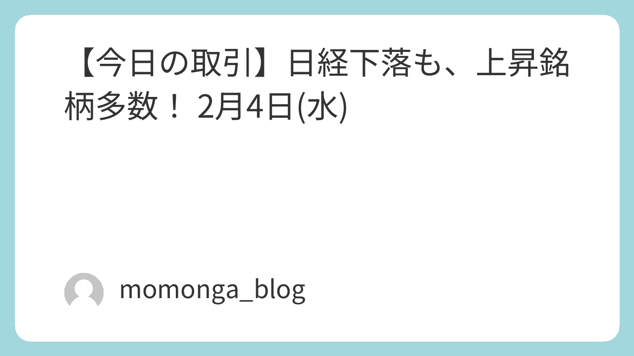 【今日の取引】日経下落も、上昇銘柄多数! 2月4日(水)