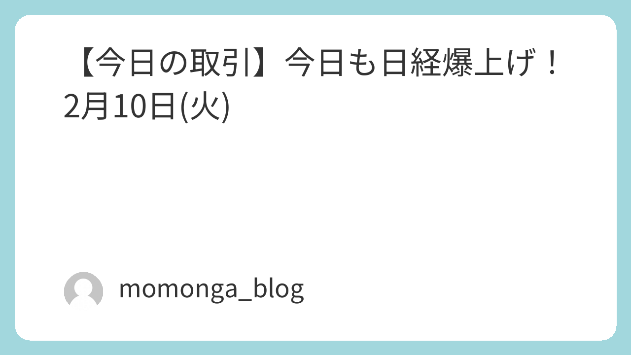 【今日の取引】今日も日経爆上げ! 2月10日(火)