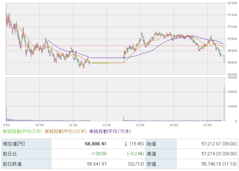 56,806円で本日の取引が終了しました。