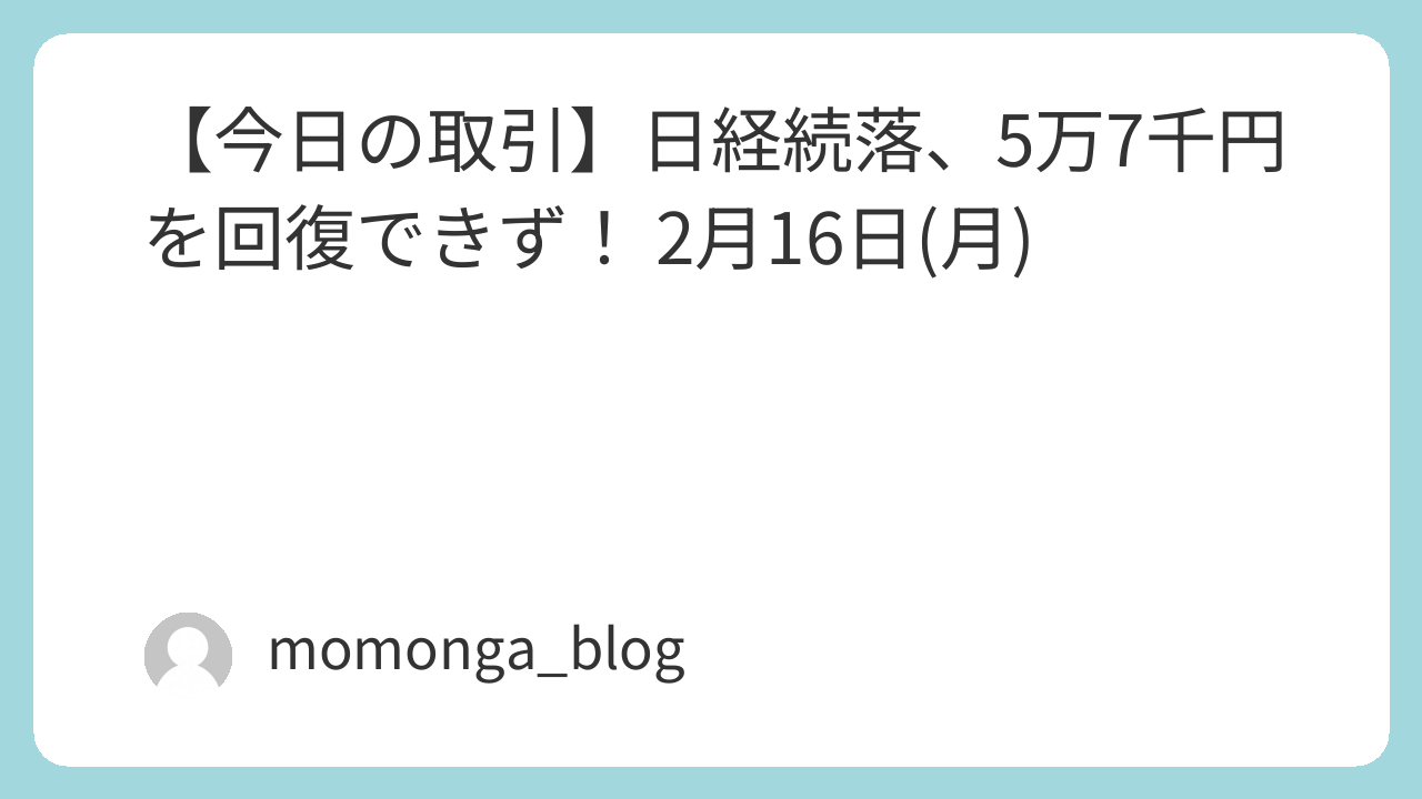 【今日の取引】日経続落、5万7千円を回復できず! 2月16日(月)
