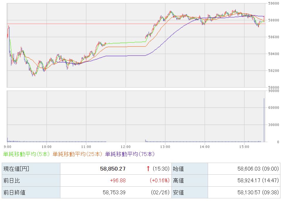 日経で約0.2%上昇、TOPIXで約1.5%上昇、