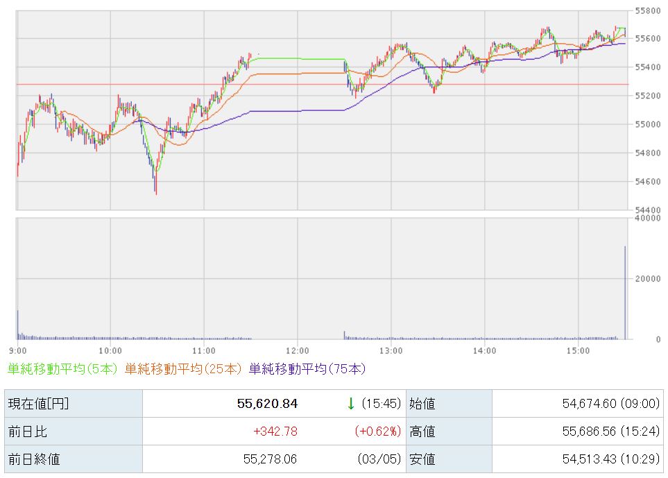 日経で約0.6%上昇、TOPIXで約0.4%上昇、