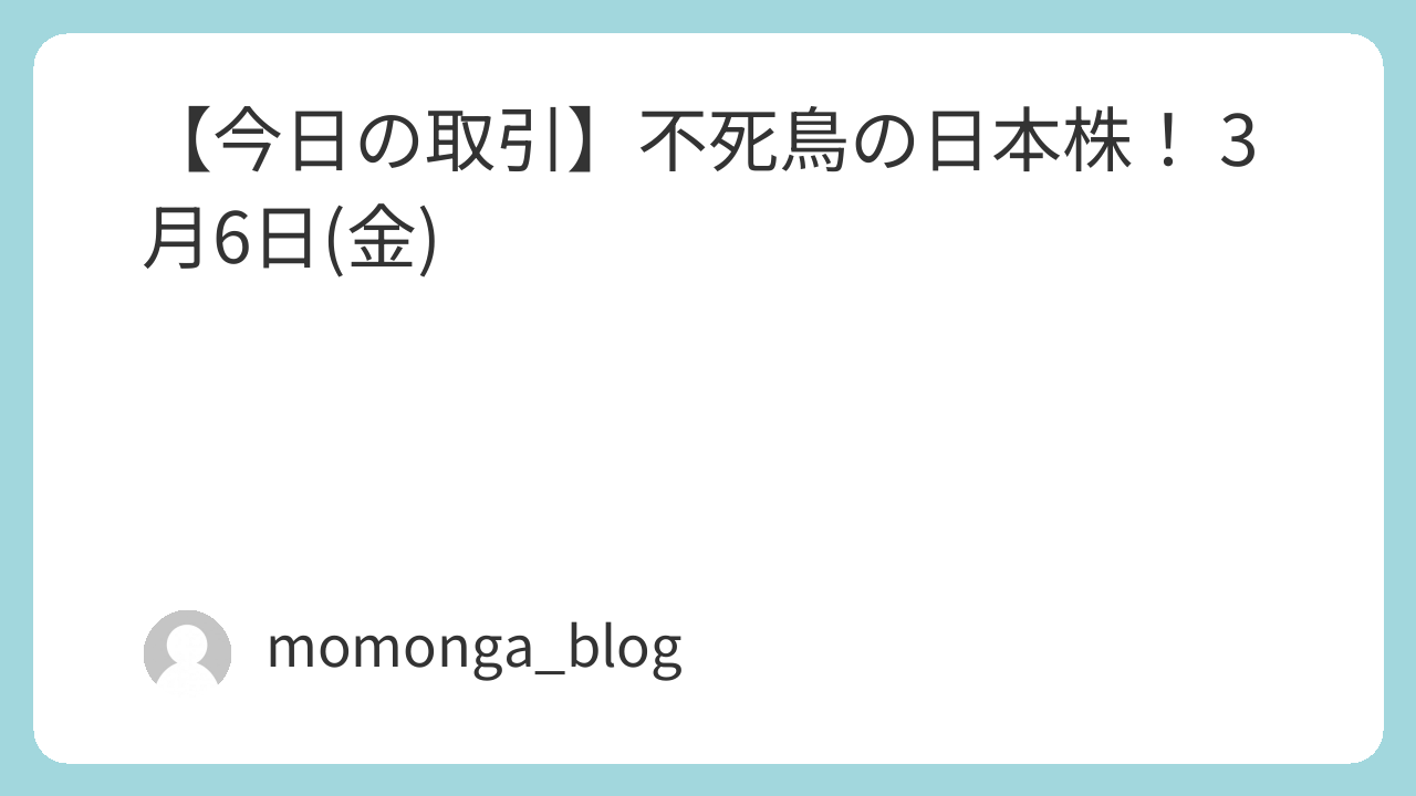 【今日の取引】不死鳥の日本株! 3月6日(金)