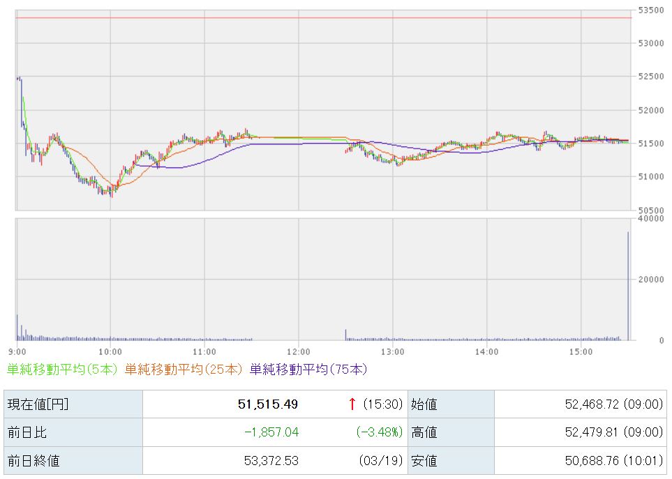 51,515円で本日の取引が終了しました。