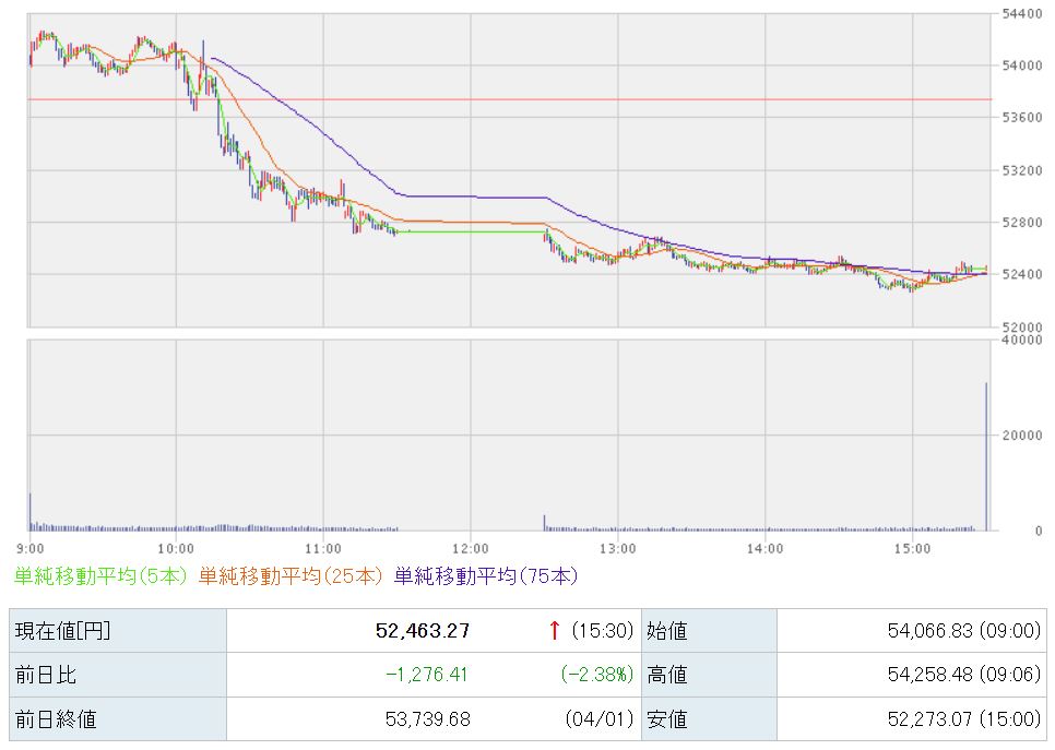 日経で約2.4%下落、TOPIXで約1.6%下落、