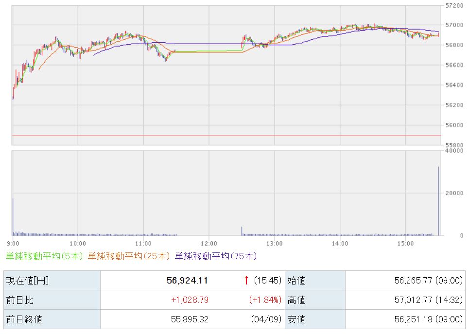 日経で約1.8%上昇、TOPIXで約0.04%下落、