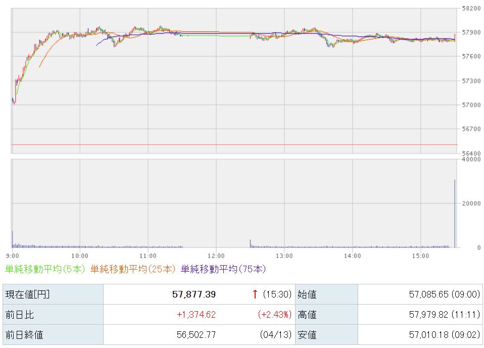 日経で約2.4%上昇、TOPIXで約0.9%上昇、