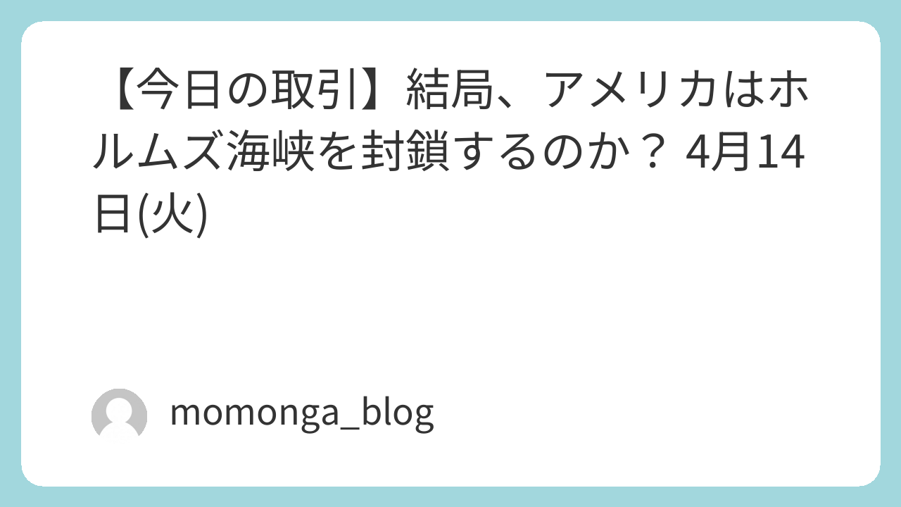 【今日の取引】結局、アメリカはホルムズ海峡を封鎖するのか? 4月14日(火)