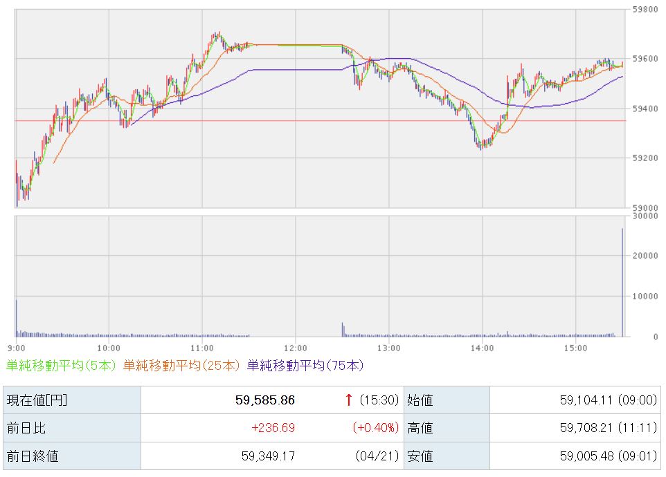 日経で約0.4%上昇、TOPIXで約0.7%下落、