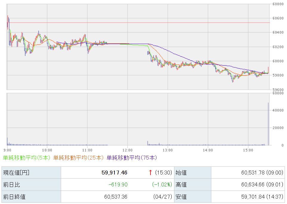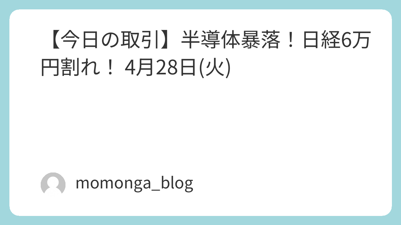【今日の取引】半導体暴落!日経6万円割れ! 4月28日(火)