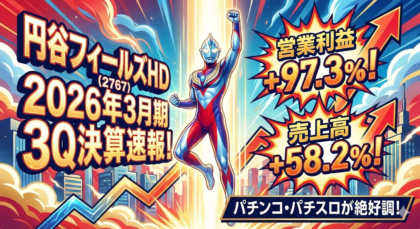 円谷フィールズホールディングス株式会社から、2026年3月期 第3四半期の決算短信が発表されました。一言で言えば、「パチンコ・パチスロ事業が絶好調で、グループ全体の利益を押し上げた」内容となっています。一方で、中国市場の不透明感など、注視すべきポイントも明確になりました。