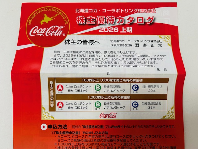 【株主優待】北海道コカ・コーラボトリング (2573)